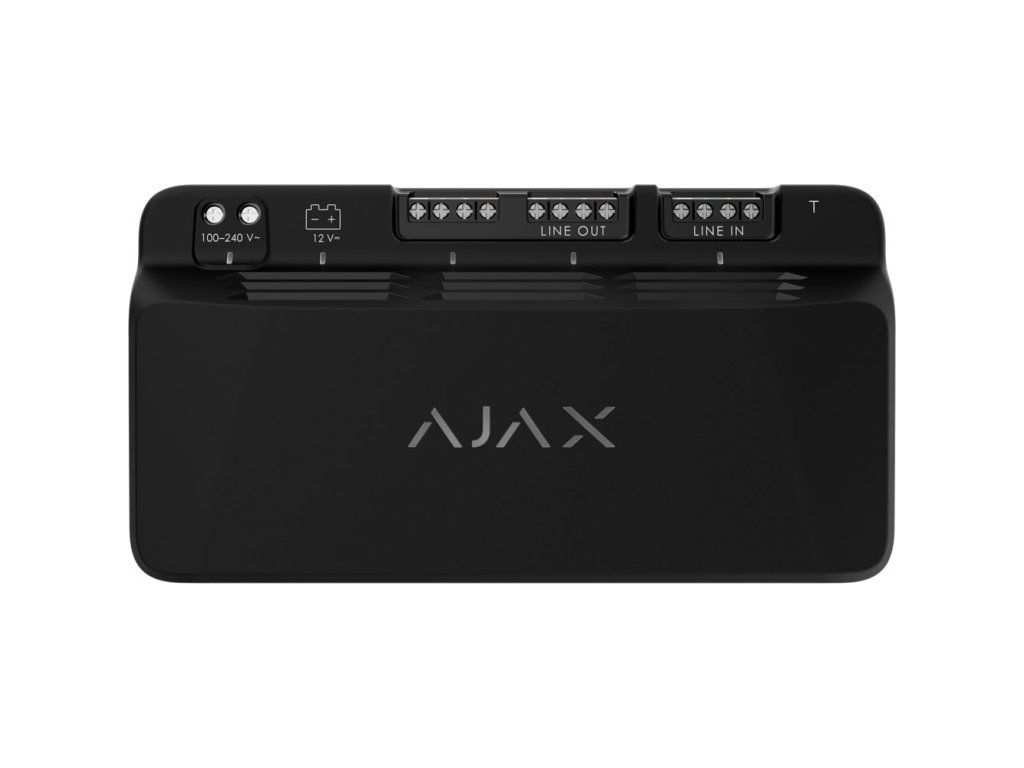 🔌 Napájanie zbernice Fibra – zariadenie poskytuje dodatočný výkon až 45 W pre napájanie viacerých prvkov systému AJAX Fibra, ak je výkon centrálnej jednotky (Hub Hybrid) nedostatočný.