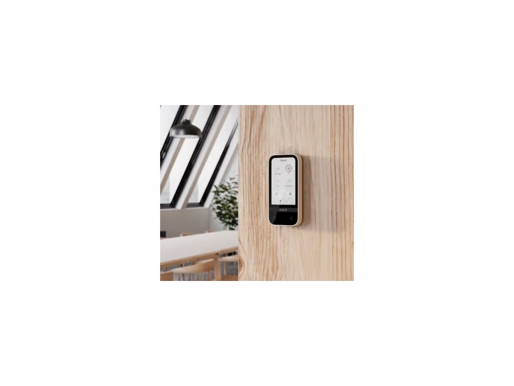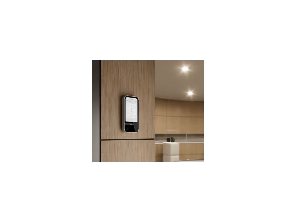 Klávesnica, bezdrôtová, dotyková, 5" IPS, RFID, BLUETOOTH, bielaDotyková obrazovka s uhlopriečkou 5 palcov poskytuje rýchly prístup k aktuálnemu režimu zabezpečenia skupiny. Aktivuje sa priblížením ruky a automaticky upravuje jas. Poskytuje zvukové upozornenia na poplachy, časové oneskorenia pri vstupe/výstupe a otvorenie dverí pri deaktivovaní systému. Hlasitosť je nastaviteľná v aplikáciách Ajax. Zobrazuje výsledky kontroly integrity systému a informuje o poruchách pri aktivácii zabezpečenia.
