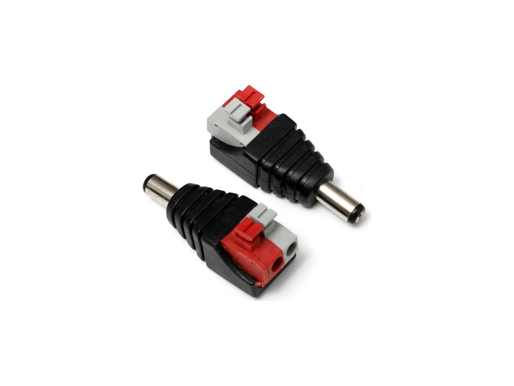 M konektor pre napájanie 12V DC. Lisované koncovky.