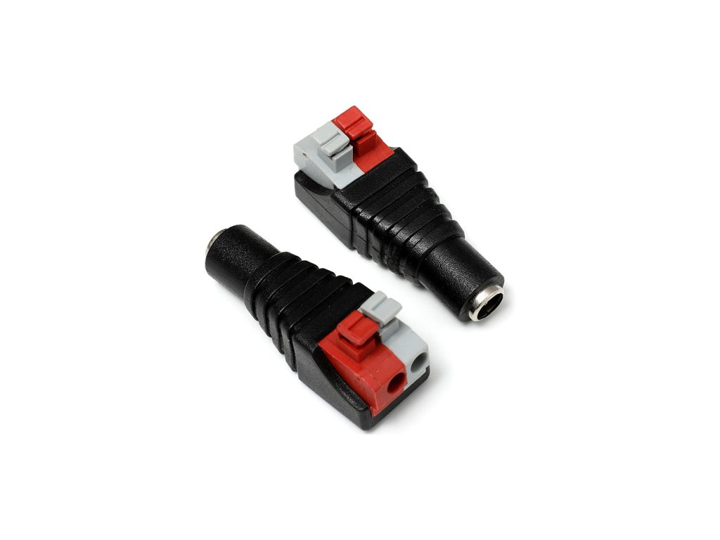 F konektor pre napájanie 12V DC. Lisované koncovky.