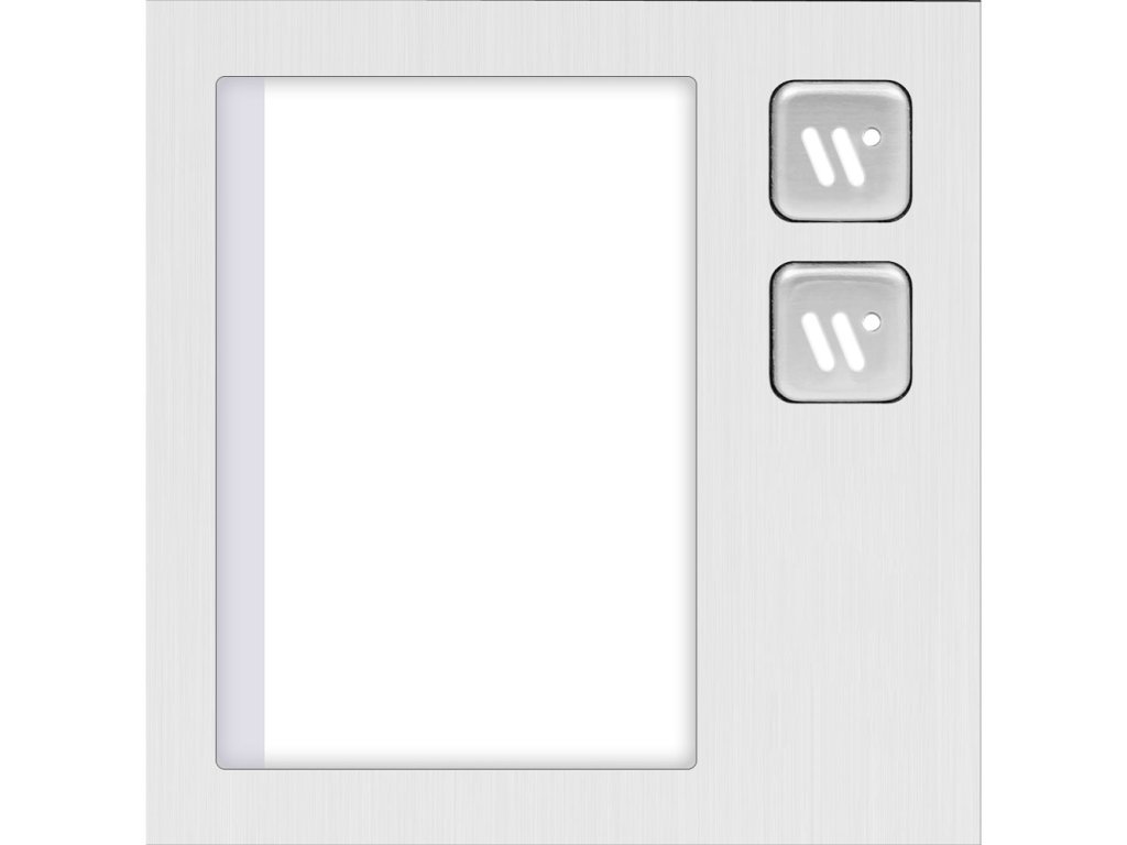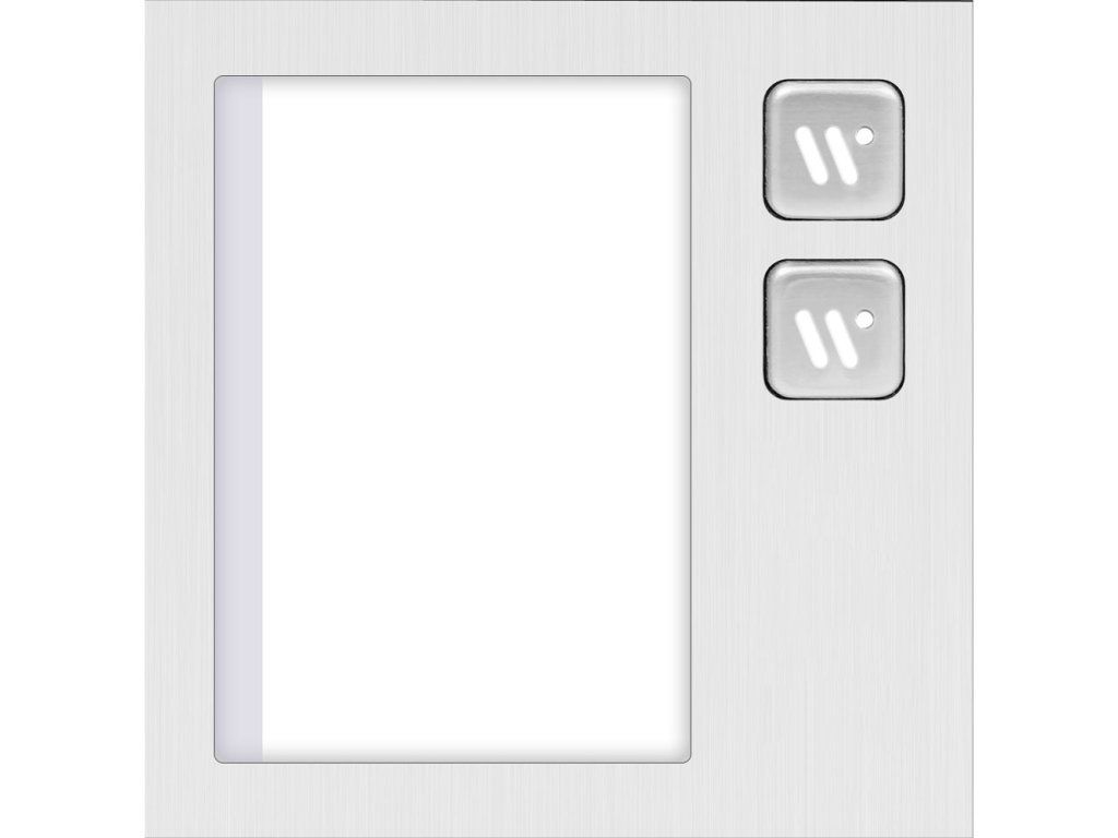 Modul s 2 mechanickými volacími tlačidlami s podsvietením, na umiestnenie do rámu série DVC 821. Vonkajšia jednotka podporuje až 64 volacích tlačidiel. Krytie IP54. Odolná nerezová oceľ.Dodatočné parametre