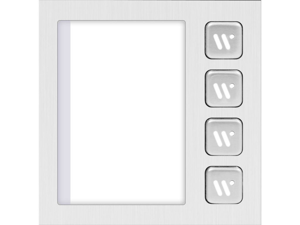 Modul so 4 mechanickými volacími tlačidlami s podsvietením, na umiestnenie do rámu série DVC 821. Vonkajšia jednotka podporuje až 64 volacích tlačidiel. Krytie IP54. Odolná nerezová oceľ.Dodatočné parametre